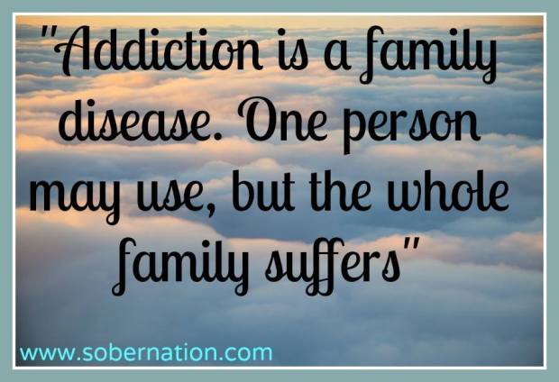 Yesterday there was an article from sober nation about the effects of addiction on family. This is just a reminder that everyone knows someone who suffers from addiction…whether it is street drugs, alcohol or prescription drugs. They are not the losers of the world, they are normal everyday people who for some reason made bad choices and the addiction snuck up on them. Just reach out to people who are suffering, because we all can make a difference. And one person’s concern may be all that is needed to turn a life around.